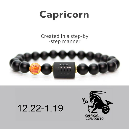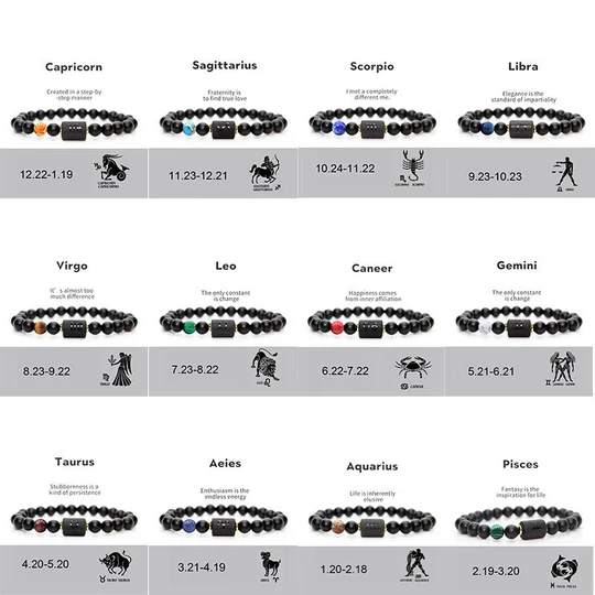 Bodhi Stones 12 Constellations of the Zodiac Black Onyx Adjustable Bracelet