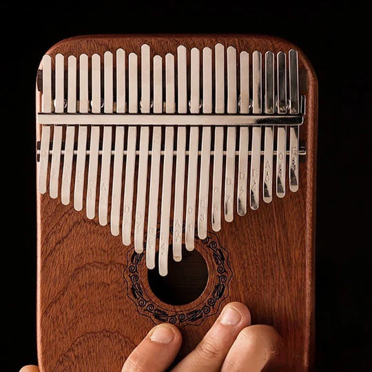 Kalimba, also known as Thumb Piano, is a new type of instrument originated in Africa, played by holding the instrument in the hands and plucking the tines with the thumbs.