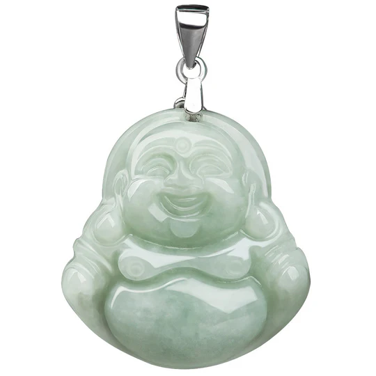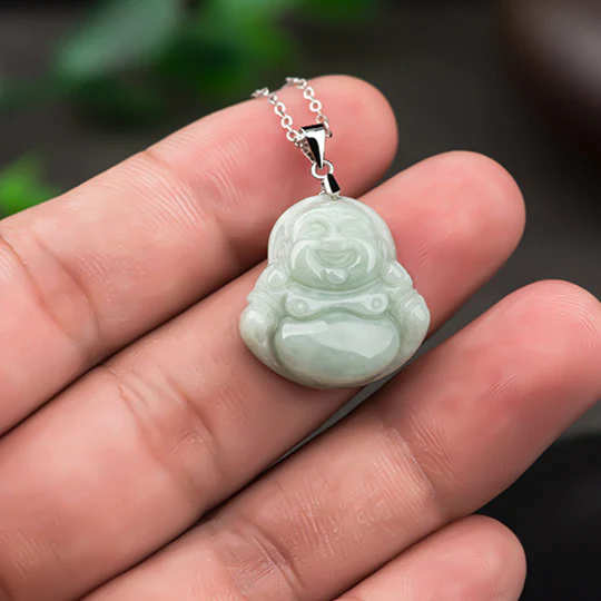 Bodhi Stones 925 Sterling Silver Laughing Buddha Jade Blessing Necklace Chain Pendant – bodhistones.com
