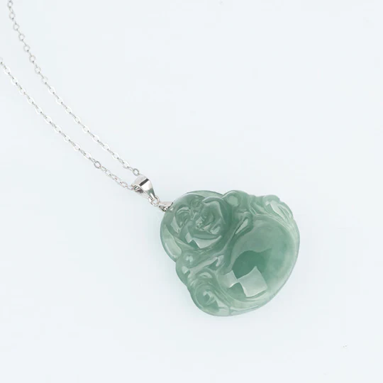 Bodhi Stones 925 Sterling Silver Laughing Buddha Jade Protection Calm Necklace Chain Pendant