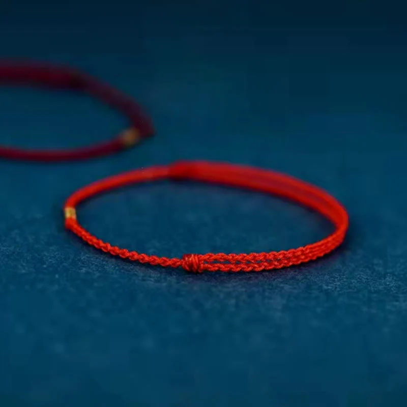 This vibrant bracelet is carefully crafted with a durable red thread that signifies good fortune.