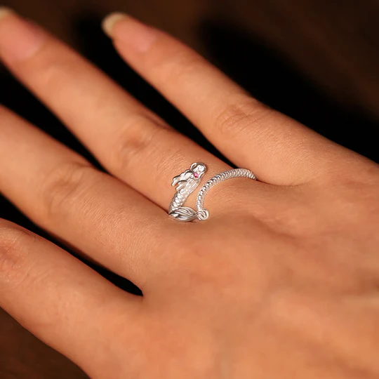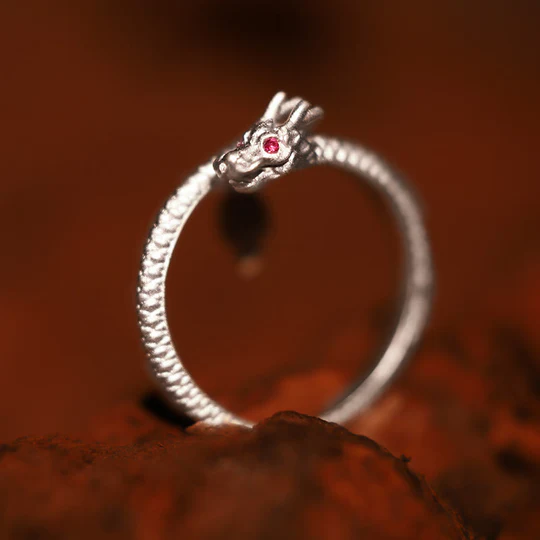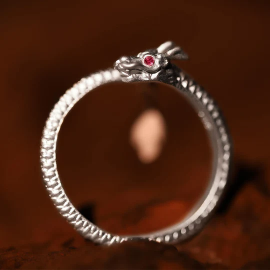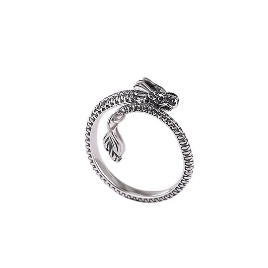 Bodhi Stones 925 Sterling Silver Vintage Year of the Dragon Luck Protection Strength Adjustable Ring