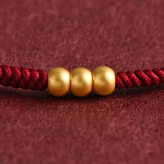 Bodhi Stones 999 Gold Mini Three Beads Design Handmade Luck Rope Bracelet Anklet – bodhistones.com