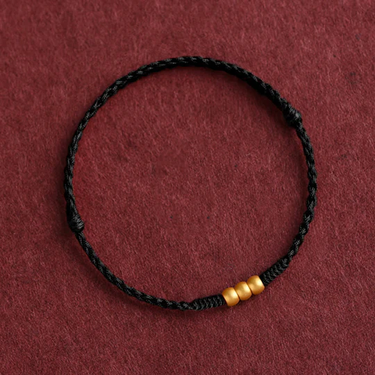 Gold Mini Beads bracelet features three 999 gold beads on a handmade rope. This bracelet, also wearable as an anklet, symbolizes luck and prosperity. The gold beads are meticulously crafted, adding a touch of elegance while embodying the essence of good fortune. The durable rope ensures both comfort and longevity, making it a meaningful accessory for daily wear.💕