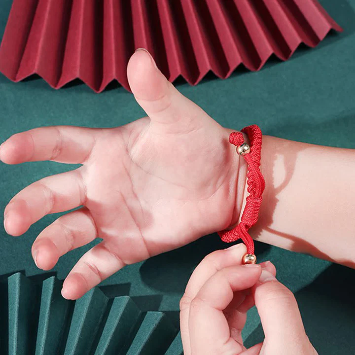 This vibrant bracelet is carefully crafted with a durable red thread that signifies good fortune.