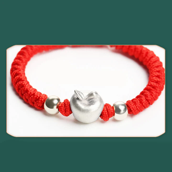 Bodhi Stones 999 Sterling Silver Apple Red Multicolored Rope Luck Protection Handcrafted Kids Bracelet