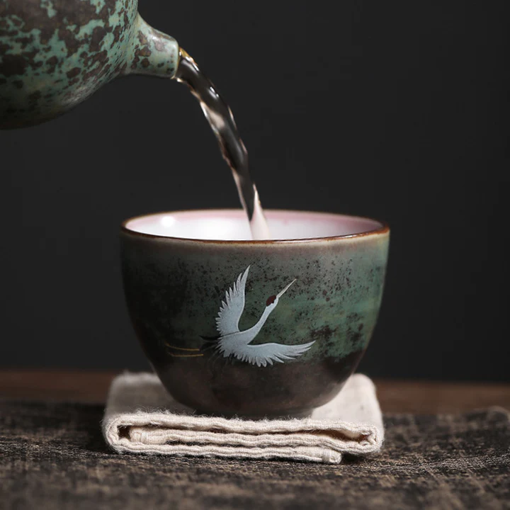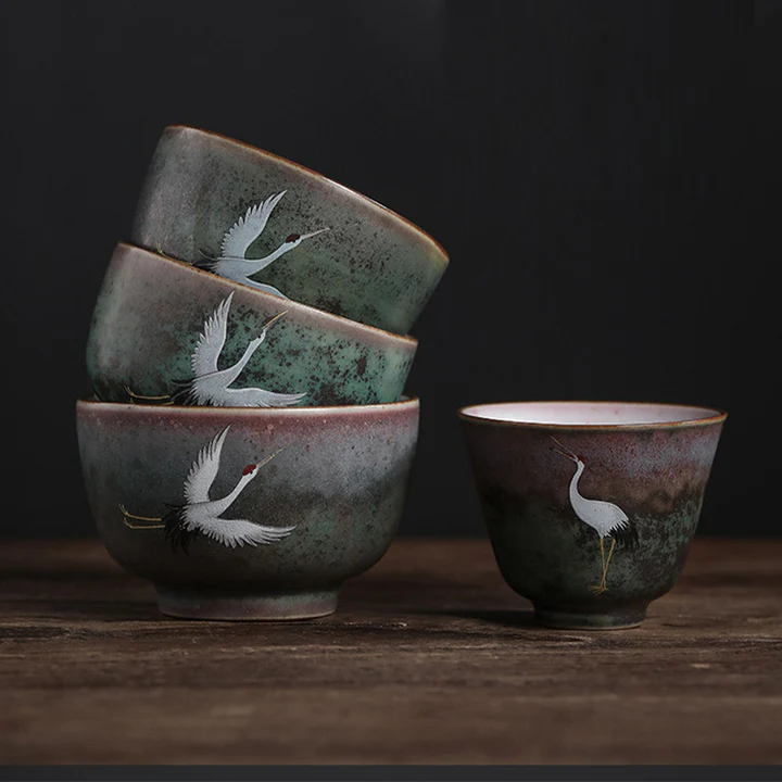 Bodhi Stones Auspicious Crane Ceramic Teacup Kung Fu Tea Cup Bowl