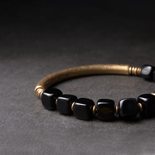 Bodhi Stones Black Obsidian Crystal Copper Strength Couple Bracelet