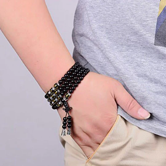 Bodhi Stones Black Obsidian Six True Words Protection Mala Bracelet