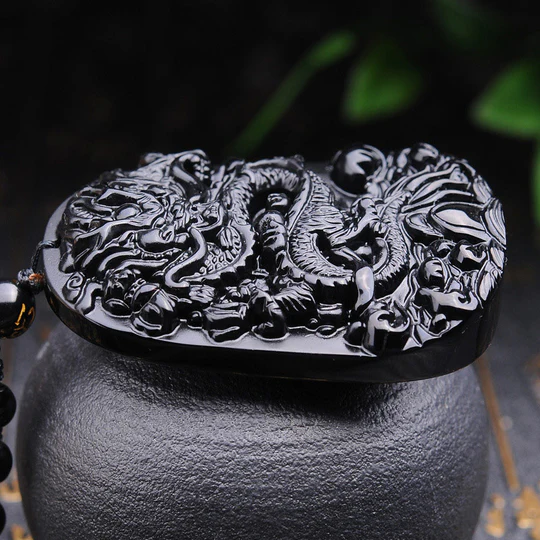 Bodhi Stones Black Obsidian Stone Dragon Fulfilment Pendant Necklace