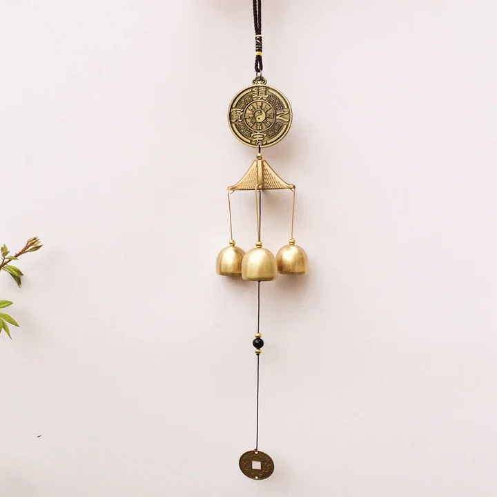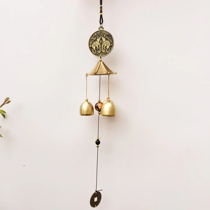 Bodhi Stones Blessing Letter Elephant Bagua Auspicious Coin Wall Hanging Chime Bell Handmade Home Decoration