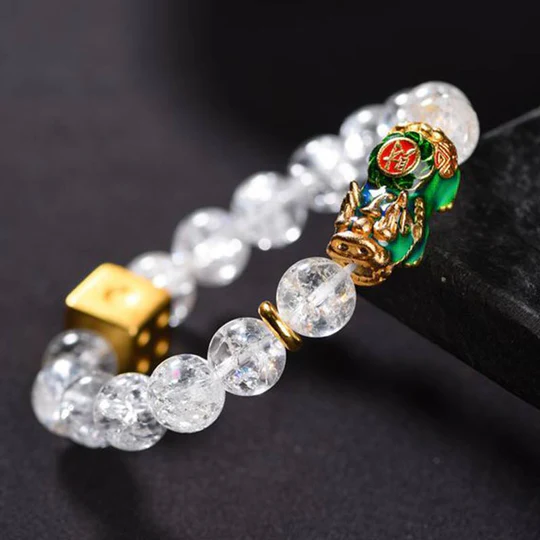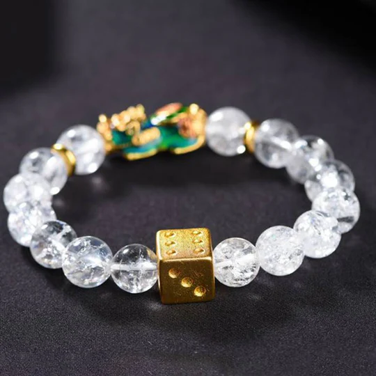 Bodhi Stones Color-Changing Pixiu White Crystal Dice Wealth Bracelet