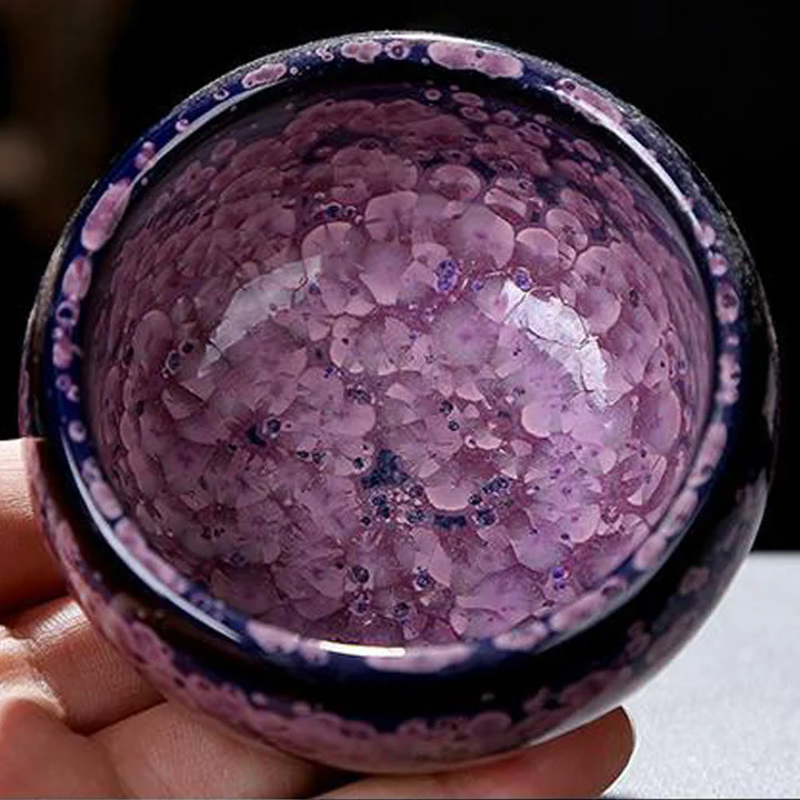 Bodhi Stones Colorful Iris Flowers Chinese Jianzhan Kiln Change Porcelain Teacup Tenmoku Kung Fu Tea Cup
