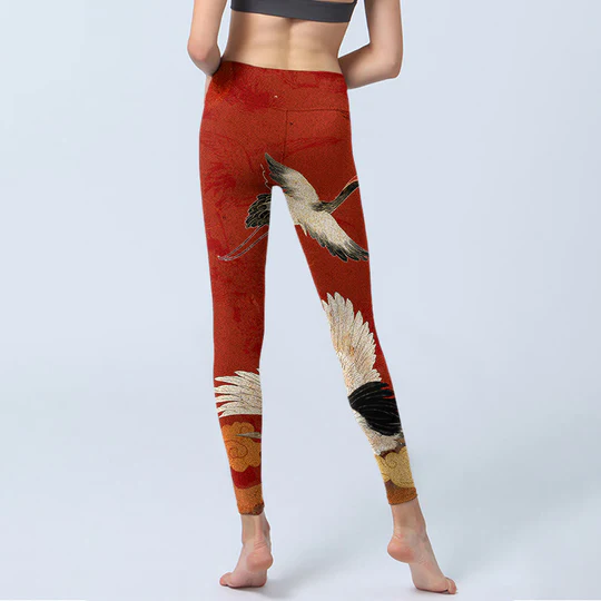 - Design Inspiration: The leggings feature a design of Cranes, symbolizing longevity, wisdom, and grace. In many cultures, cranes are revered as auspicious birds that represent good fortune and harmony, making this pattern a celebration of beauty and the deep connection to nature and spirituality.
