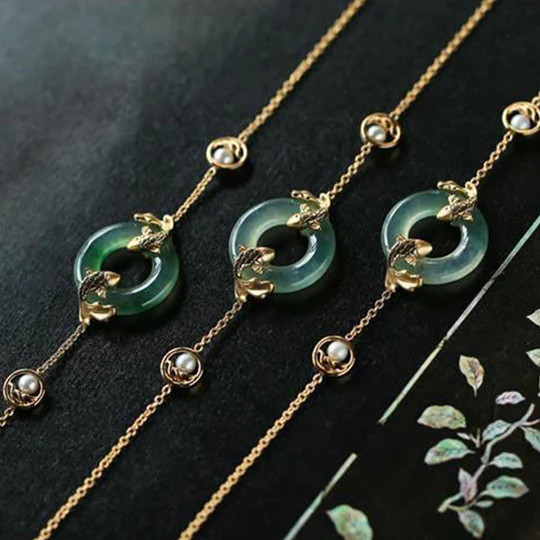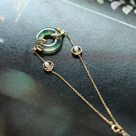 Bodhi Stones Cyan Jade Koi Fish Healing Harmony Bracelet