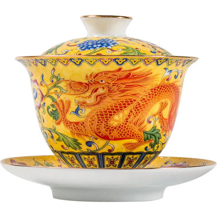 Dragon Phoenix Flower Design Ceramic Gaiwan Sancai Teacup Kung Fu Tea Cup And Saucer With Lid