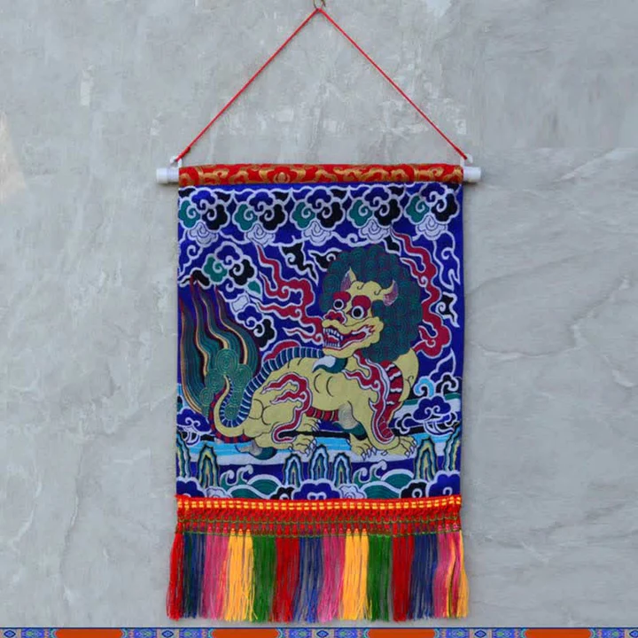 Bodhi Stones Feng Shui Kirin Spiritual Colorful Tassel Wall Art
