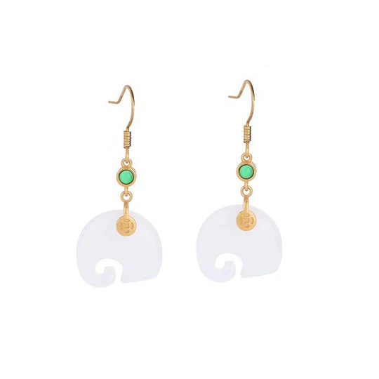 Bodhi Stones FengShui Elephant White Jade Fortune Earrings