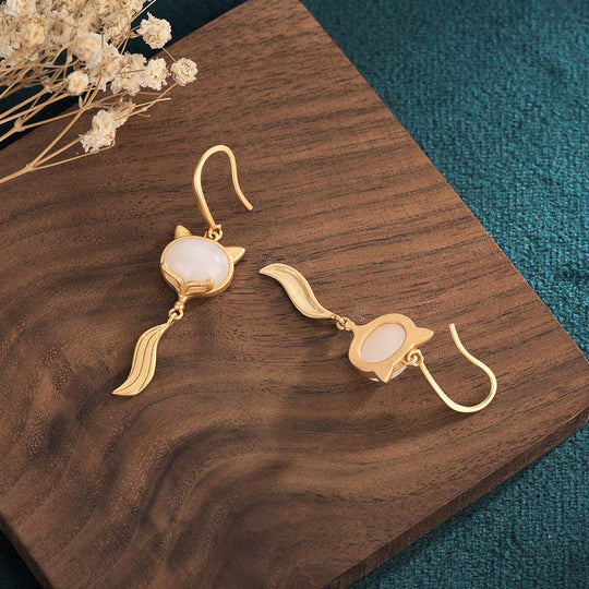 Bodhi Stones FengShui White Jade Fox Fortune Earrings