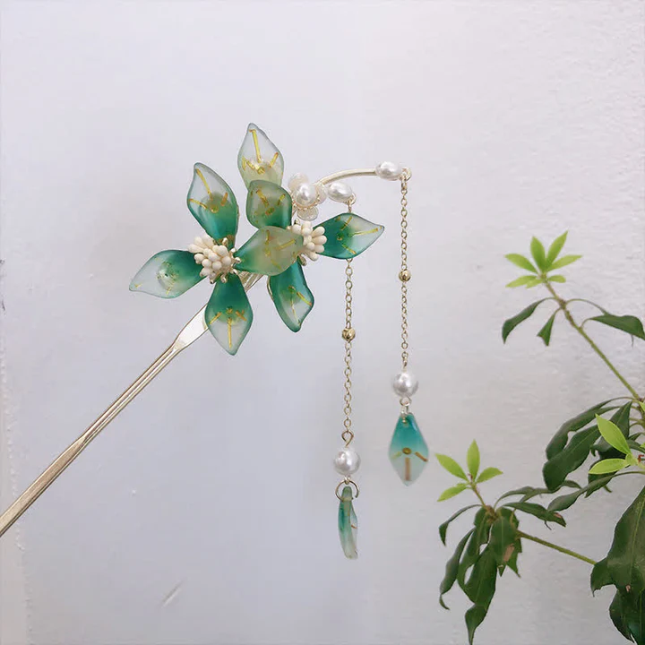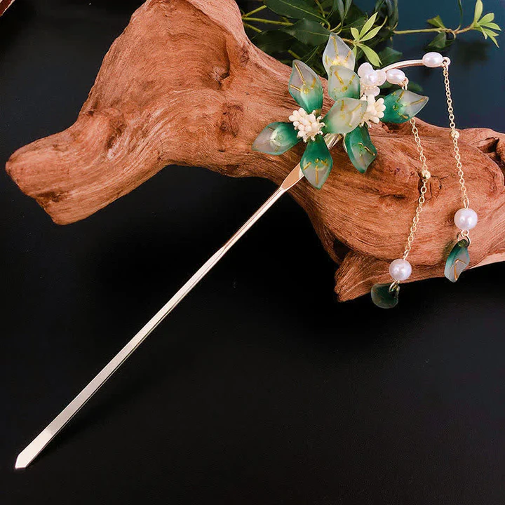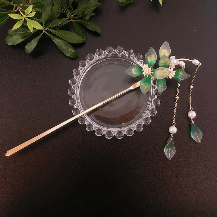 Bodhi Stones Flower Leaf Pearl Peace Tassel Hairpin