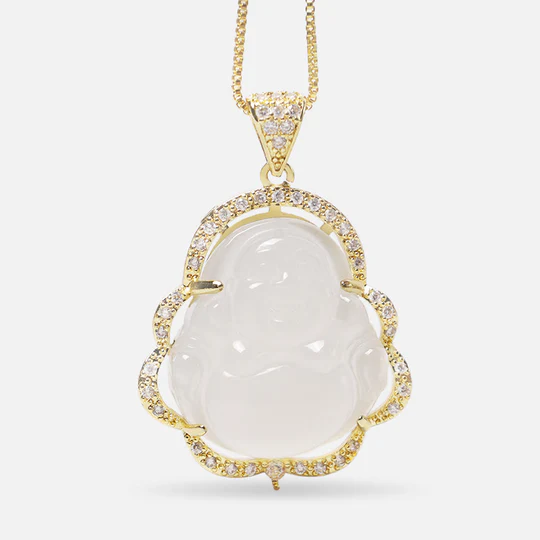 Good Luck Laughing Buddha Necklace is designed to bring you a sense of calm no matter the situation of things. A laughing Buddha is always a sign of good luck, Sheng Fui, windfall luck, and happiness. With a combination of jade stones, this necklace is sure to bring good fortune your way. The jade also brings you the strength to do well in your finances.