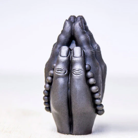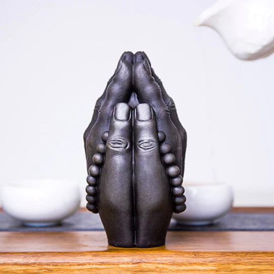 Bodhi Stones Handmade Buddha Hand Namaste Iron Powder Rust Cast Resin Statue Decoration