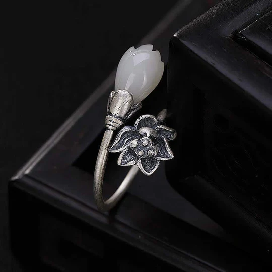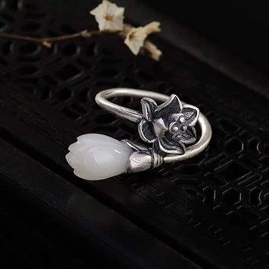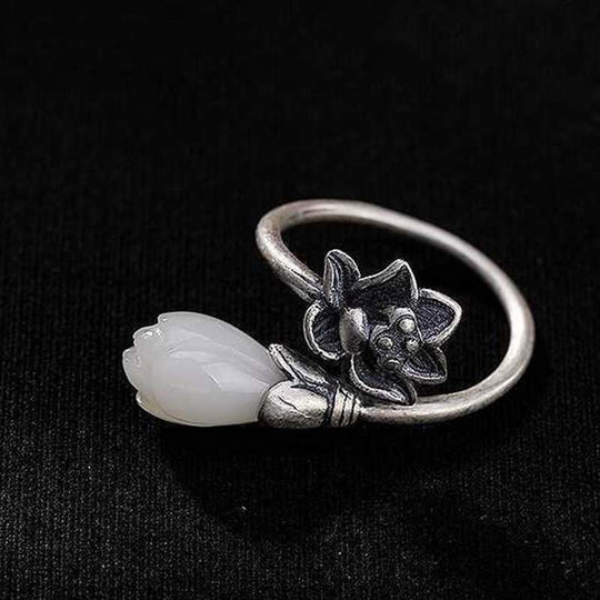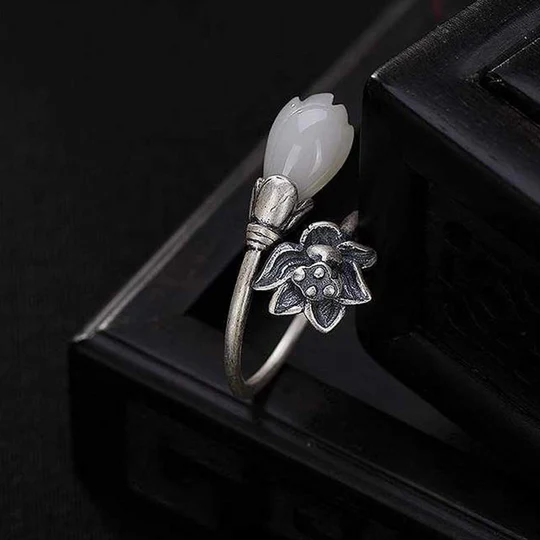 Bodhi Stones Jade Lotus Copper Balance Healing Adjustable Ring