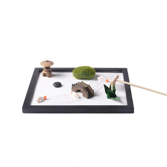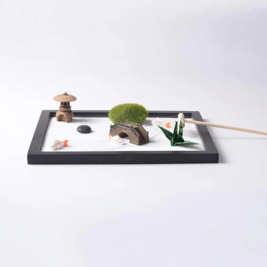 Immerse yourself in a serene oasis with our Bodhi Stones Koi Fish Small Bridge Grass Landscape Peace Meditation Zen Garden Decoration. Handcrafted with premium materials, this decoration embodies the essence of peace, enlightenment, and prosperity. The Zen Circle symbolizes effortlessness and imperfection, while the Koi Fish represents luck, abundance, and success. Create a harmonious atmosphere and invite positive energy into your surroundings with this meaningful piece of art.