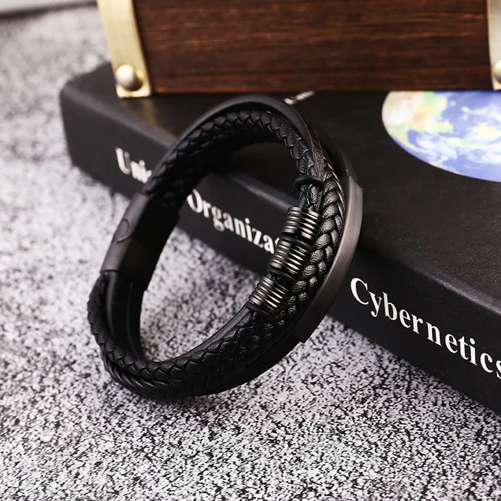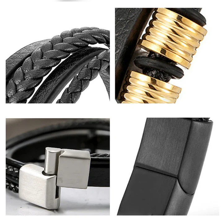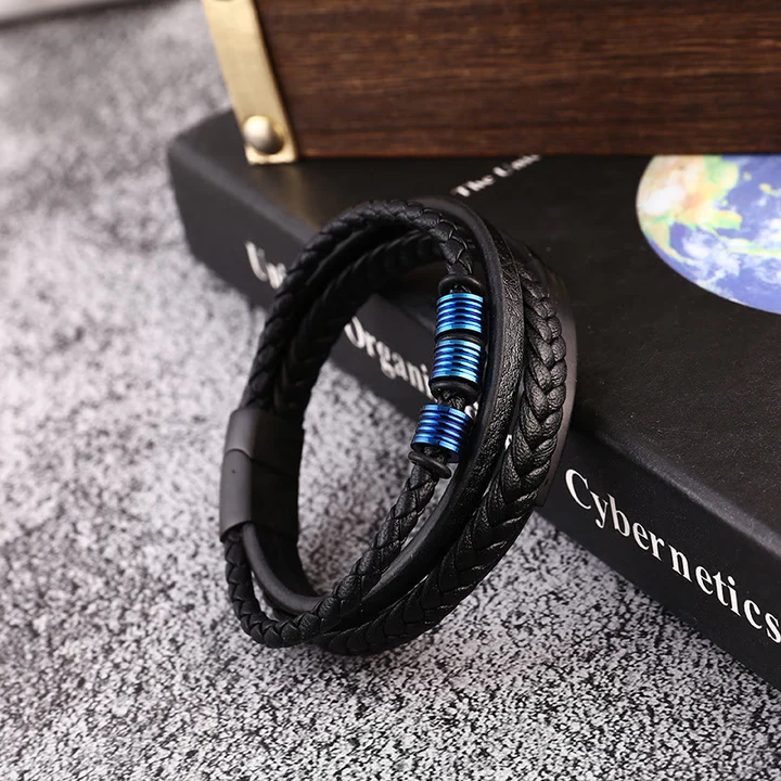 Bodhi Stones Leather Multi-Layer Titanium Steel Balance Braided Magnetic Buckle Bracelet