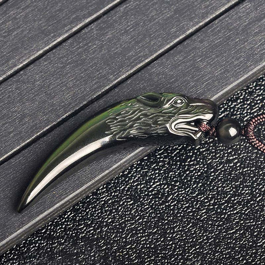 Bodhi Stones Natural Black Obsidian Ice Obsidian Rainbow Obsidian Wolf Tooth Pattern Strength Necklace Pendant
