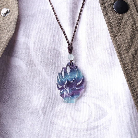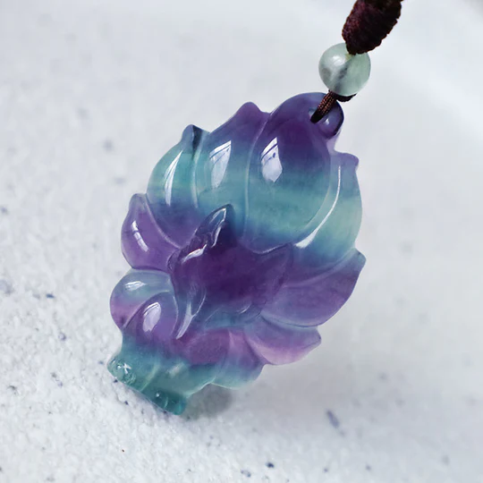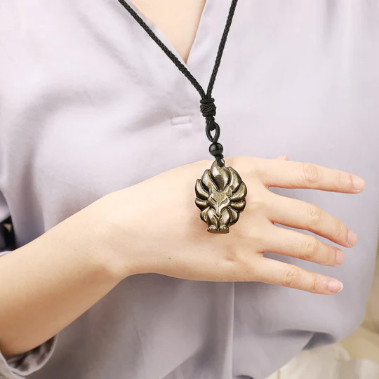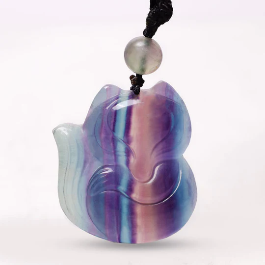Bodhi Stones Natural Fluorite Gold Sheen Obsidian Fox Pendant Protection Necklace