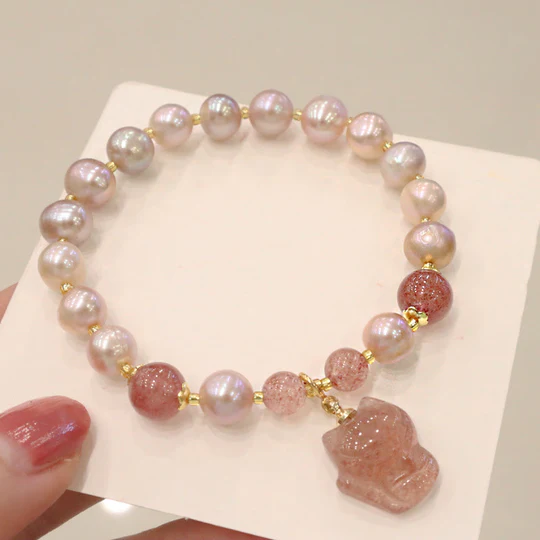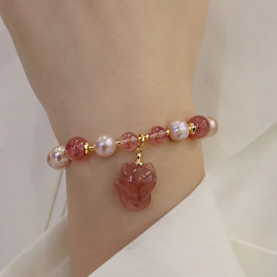 Bodhi Stones Natural Pearl Strawberry Quartz Cute Fox Love Healing Charm Bracelet – bodhistones.com