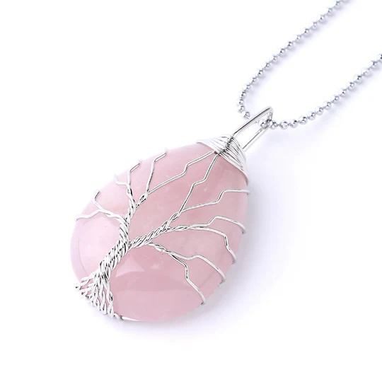 Bodhi Stones Natural Quartz Crystal Tree Of Life Healing Energy Necklace Pendant