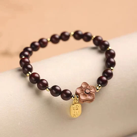 Bodhi Stones Natural Sandalwood Peach Blossom Small Leaf Red Sandalwood Ruyi Charm Protection Bracelet