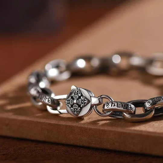 Bodhi Stones Om Mani Padme Hum Double Dorje Copper Engraved Wisdom Bracelet