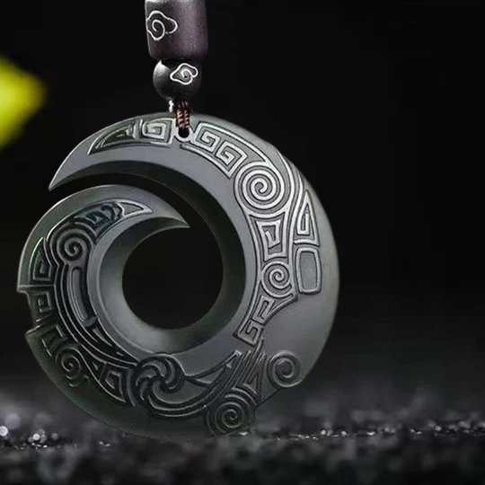 Bodhi Stones One’s Luck Improves Design Patern Hetian Cyan Jade Peace Buckle Luck Necklace Pendant