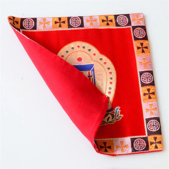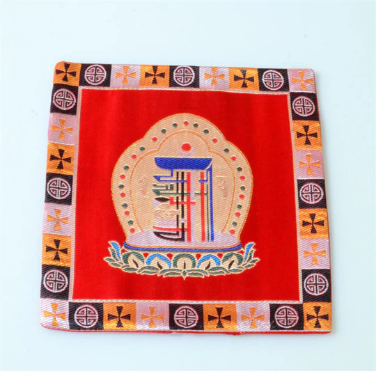 - 🔮 Look closely at its intricate design and you’ll notice the Man-Bcu Kalachakra symbol. Perfectly sized for smaller altars, this mat measures 21*21cm.