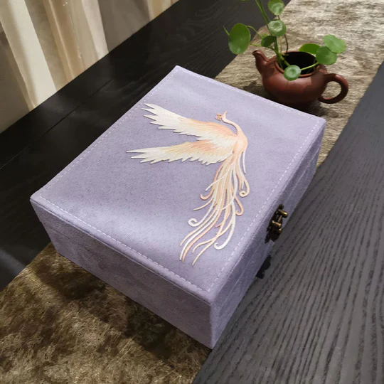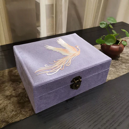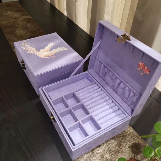 Bodhi Stones Purple Phoenix Jewelry Box Organizer Two-Layer Jewelry Storage Box Flannel Box