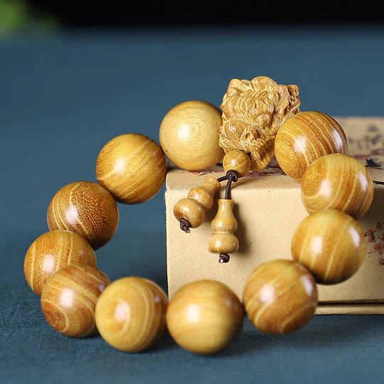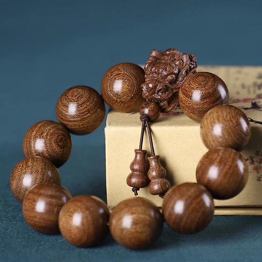 Bodhi Stones Rosewood Green Sandalwood Small Leaf Red Sandalwood Dragon Carved Protection Bracelet