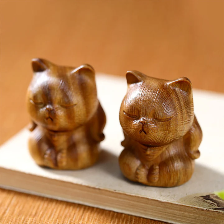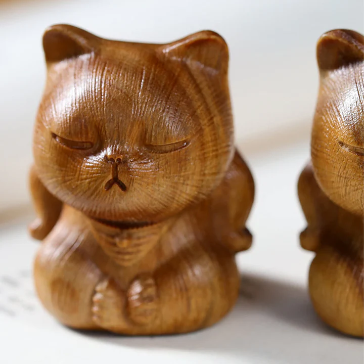Bodhi Stones Small Mini Green Sandalwood Lucky Cat Carved Soothing Decorations