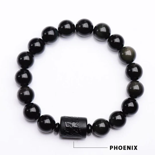 Bodhi Stones Soul Cleansing Black Obsidian Phoenix Dragon Bracelet