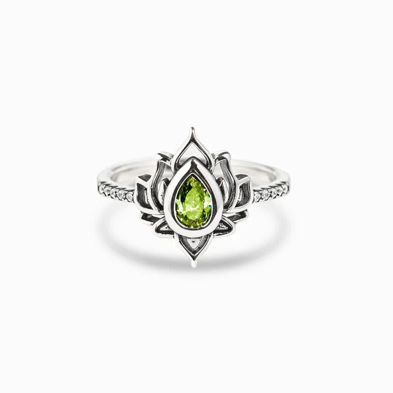 Bodhi Stones Sterling Silver Lotus Zircon Blessing Protection Ring