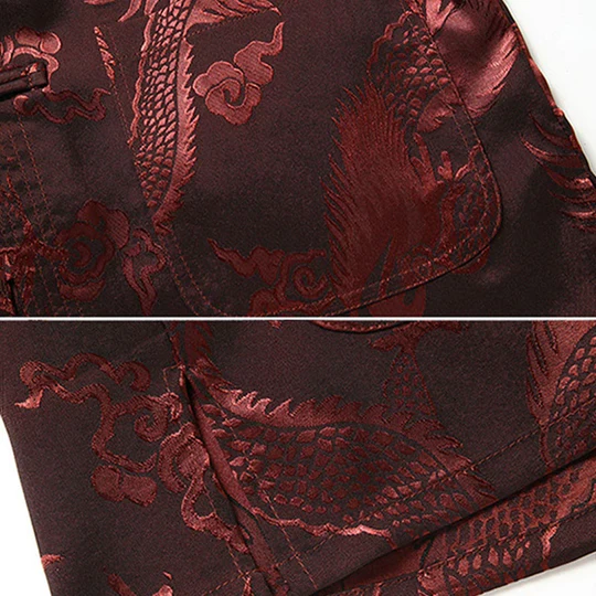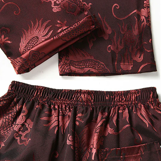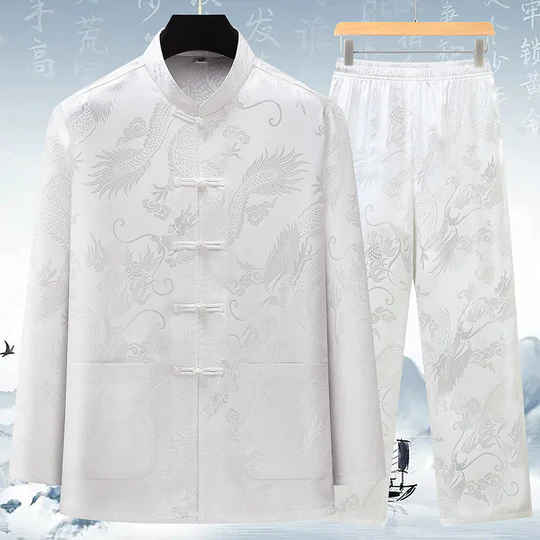 Tang Suit Men Hanfu set features a Chinese Dragon design, symbolizing power and wisdom. This traditional Kung Fu shirt and long-sleeved coat with pants reflect ancient Chinese heritage. Perfect for martial arts practice or cultural events, this set embodies the spirit of traditional craftsmanship. Wearing this attire brings a sense of connection to Chinese history and cultural pride.💕