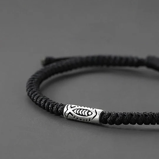Bodhi Stones Tibet Koi Fish Wealth Black String Bracelet