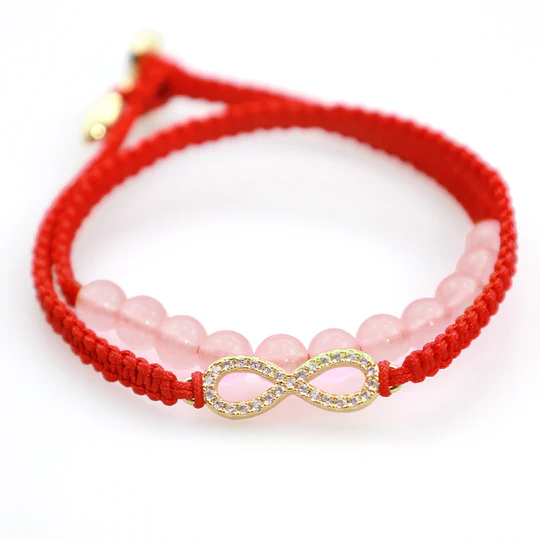 This vibrant bracelet is carefully crafted with a durable red thread that signifies good fortune.