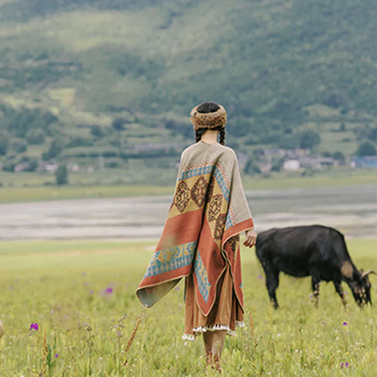 Bodhi Stones Tibetan Shawl Diamond Pattern Winter Warm Cloak Scarf