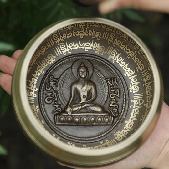 - RELAXING AND DEEP SOUNDS: Meditation bowl helps you to heal, defeat disease, lower pain levels while releasing positive energy. Healing processes are initiated through entraining our brainwaves to synchronize with the perfect resonance of the bowls. You can easily play peaceful and mesmerizing tones on this unique Tibetan singing bowl to create a type of energy medicine that reduces stress and promotes spiritual, mental, and physical healing.