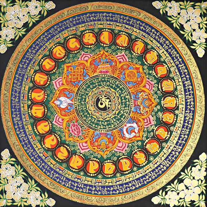 - Since the thangkas are hand-painted, the color of the details (including the border color) are random, but the content of the product is still related to the six-character mantra.