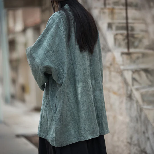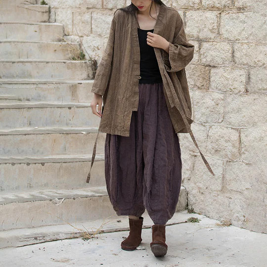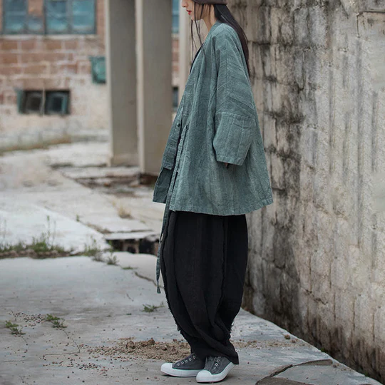 Bodhi Stones Tie Dye Lace-up Design Coat Zen Meditation Open Front Top Jacket