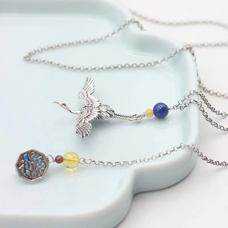 Bodhi Stones Vintage Crane Happiness Copper Brooch